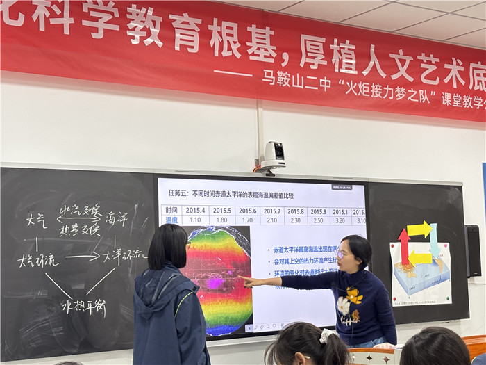 “火炬接力梦之队”是马鞍山二中2016年创建的党建品牌,我校借助这一平台,以“深化科学教育根基,厚植人文艺术底蕴”为主题,于2025年10月27日—31日,开展火炬接力人课堂教学汇报周活动。10月31日上午,我校地理教研组王星瑶、聂梦醒两位教师分别开设了教学汇报课,我校党委书记王东山以及来自全市高中的地理教师在录播教室参加了听评课。
