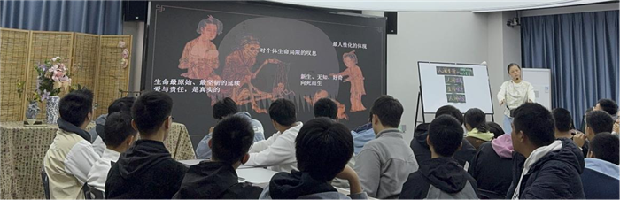 吴萌老师巧妙地将课程内容分解为“人间温情”、“生活艰辛”与“人间咏叹”三个维度。在“人间温情”部分,通过《货郎图》中货郎与孩童互动、琳琅满目的商品等细节,引导学生感受市井生活的盎然生机与朴素温情;在“生活艰辛”部分则结合历史背景,解读画作中隐含的底层民众奔波劳碌的生存状态;最后在“人间咏叹”部分,重点探讨了《骷髅幻戏图》这一独特作品,启发学生思考画家借骷髅傀儡戏所表达的对生命无常、浮生若梦的深刻哲思与咏叹。整堂课不仅让学生领略了古代绘画的精湛技艺,更使其深刻理解了艺术作为社会镜像的功能与价值。