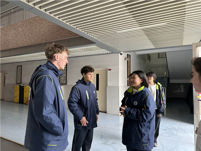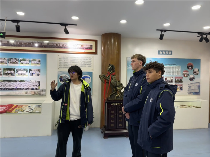 下午,学校国际课程班志愿者带领两位国际学生参观校园。志愿者们逐一讲解教学楼、图书馆、校史馆、运动场、食堂等功能区域,让他们全面熟悉校园布局,切身感受学校的文化底蕴与人文氛围。