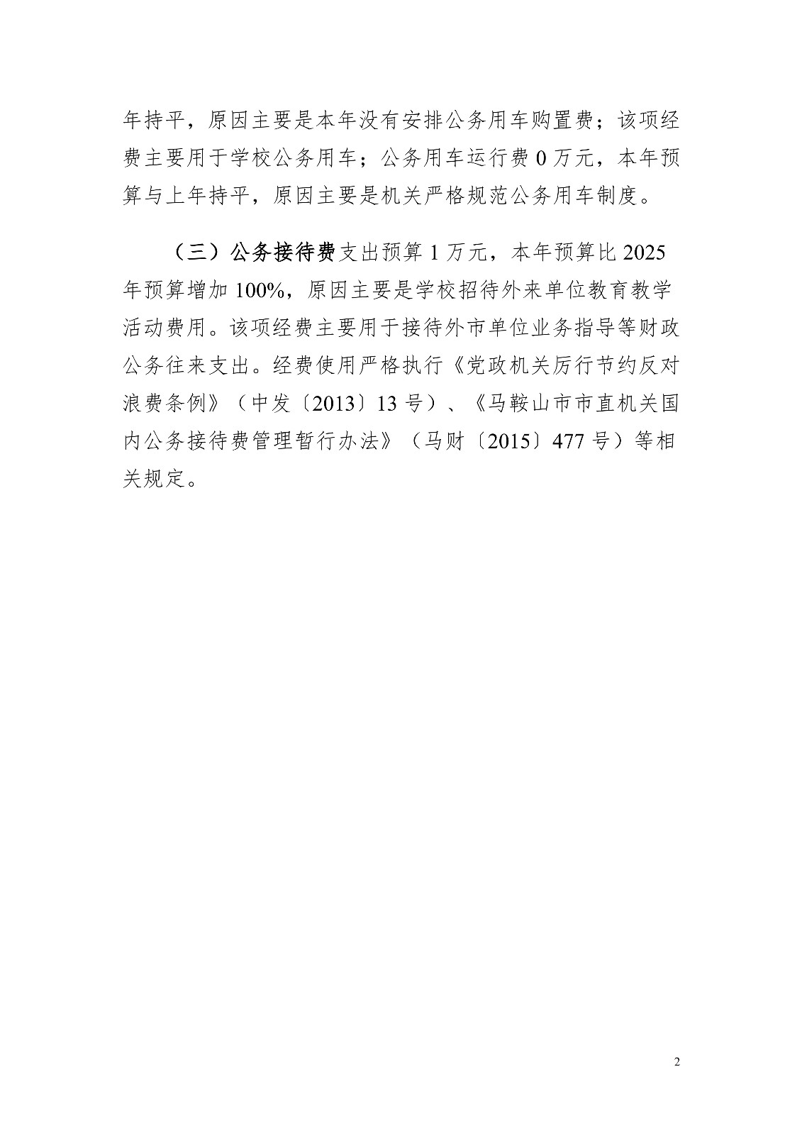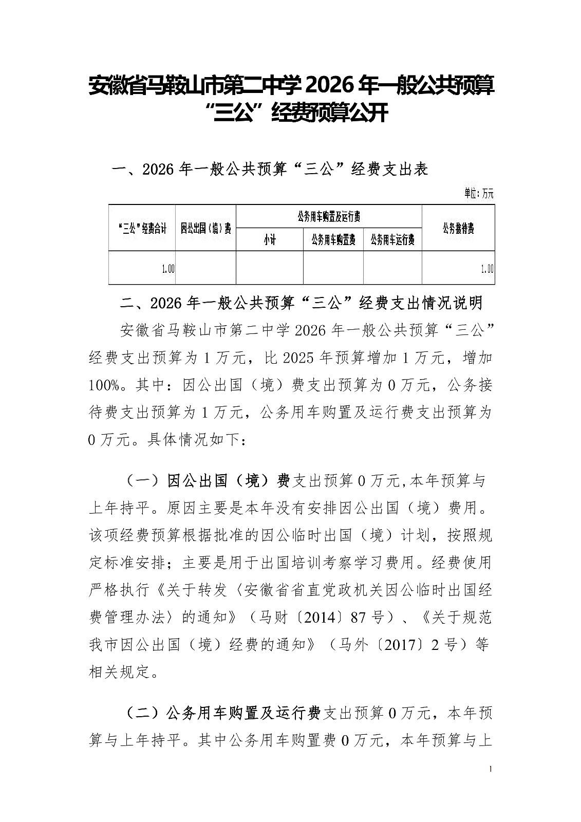 安徽省马鞍山市第二中学2026年一般公共预算“三公经费“预算公开