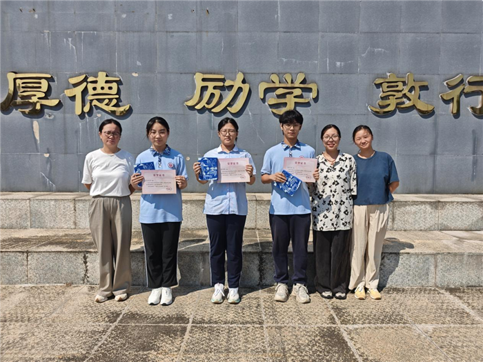 升旗仪式结束后,三位年级部主任为上一周量化考核优胜班级颁发了锦旗,同时,美术组杨青青老师为三位在2025届高三毕业纪念品设计比赛中被评为“最佳设计师”的同学颁奖。