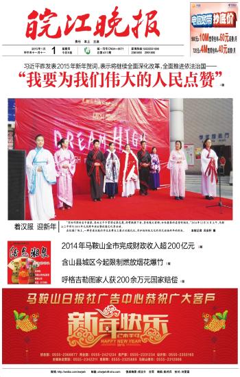 《皖江晚报》2015年1月1日头版报告我校校园文化季活动,内容如下: