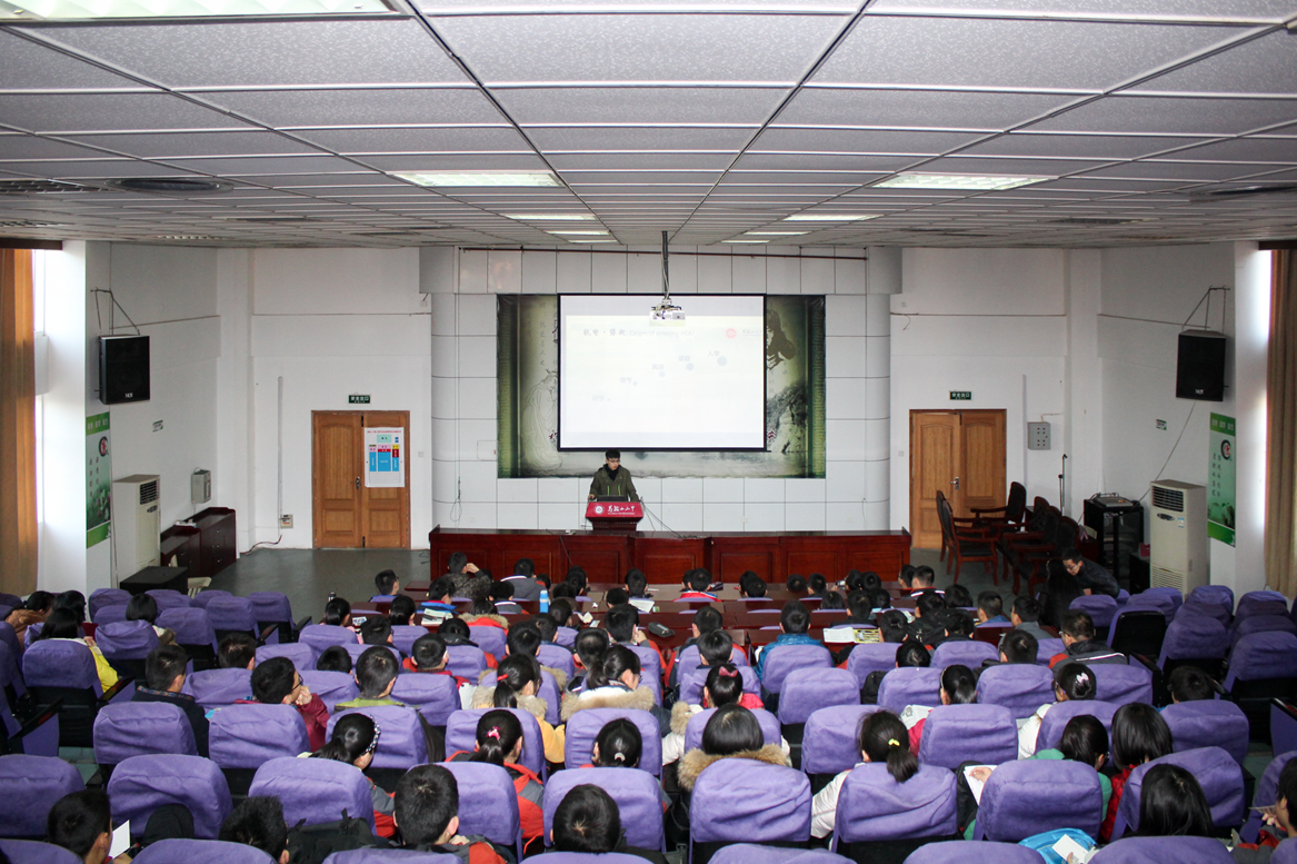 8日下午,在这考后放松的时刻,2014届毕业生章梓航带领团队回到学校,在行政楼报告厅举行了一场压轴的演讲会,与学弟学妹们分享大学生活的点滴,并给予宝贵的经验。