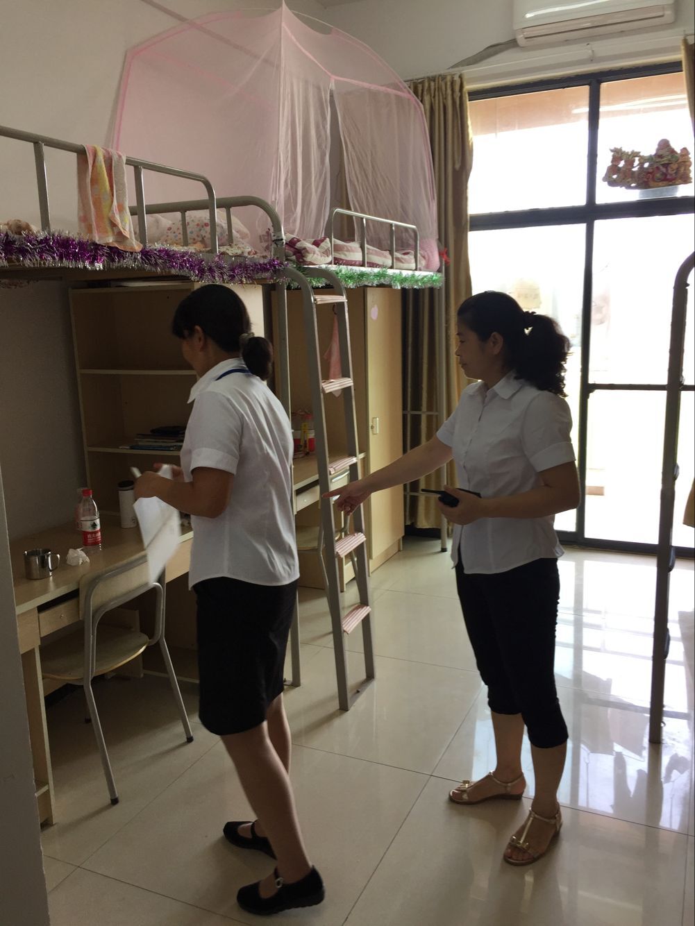 下课前为营员们打开空调,上课后检查内务和用电安全。