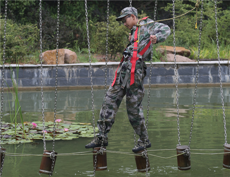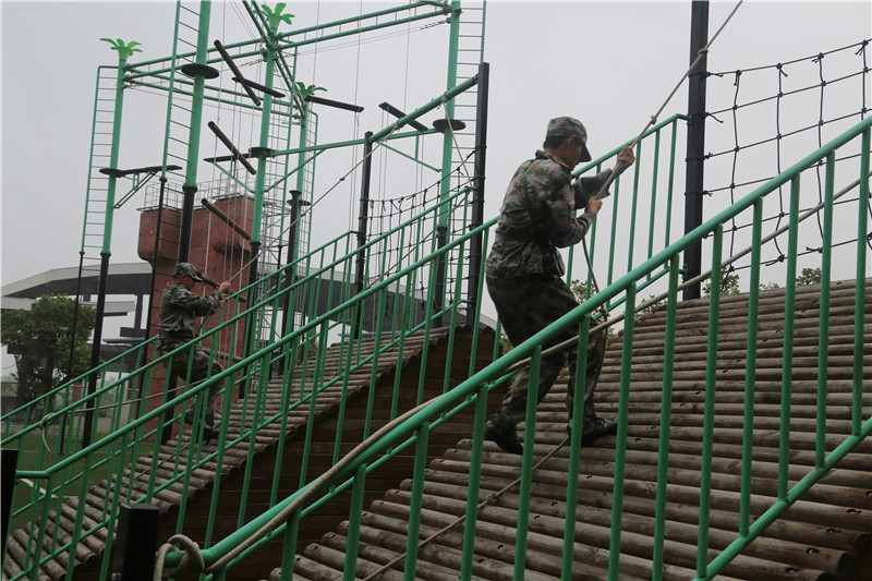 上午,一队学员参加素质拓展活动。陌生的器材,全新的规则,让他们热血沸腾,跃跃欲试。