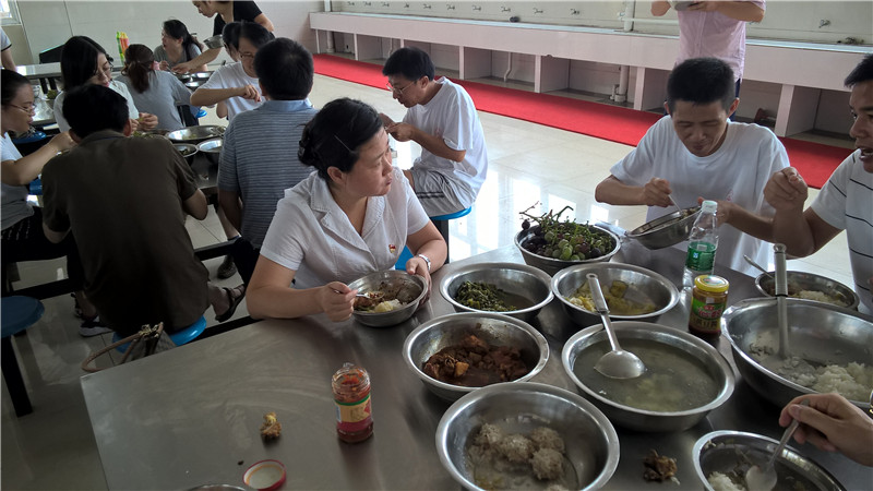 好不容易盼来了午餐,却发现食堂就是个“蒸笼”,比外面还要燥热。大家都吃不下饭,喝了点汤,吃了西瓜就愁眉苦脸对着餐桌。我也吃不下什么,本还愁着下午会不会撑不住,两个小时后,我的顾虑打消了。
