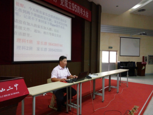理科实验二班班主任黄浩老师给两个实验班的家长和同学做了新学期工作安排和近期班级事务的布置等班级常规工作。