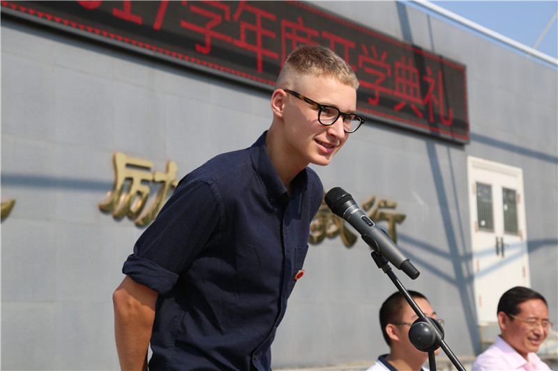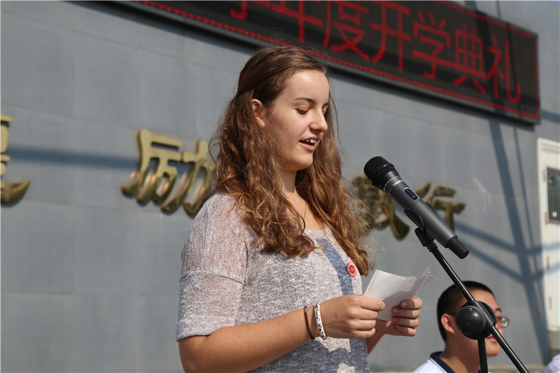 本学期通过AFS计划来到我校交流的两位留学生分别上台发言,他们是来自克罗地亚的Maja同学和来自德国的Clemens同学。他们向大家做了自我介绍,希望能尽快融入二中,了解中国文化。