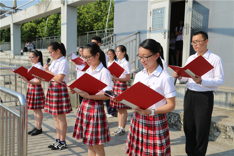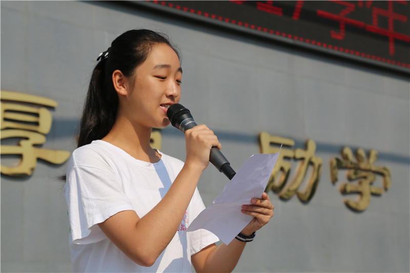高一(3)班的阮庭萱同学作为新生代表发言,她认为高一新生应当尽快忘掉过去的辉煌,踏上新的征程,迎接崭新挑战,提起勤奋之笔,书写锦锈前程。她的发言感染力很强,打动了在场的每一位师生。