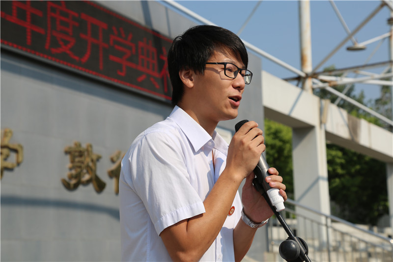 郭惠宇校长作新学期致辞,他以女排精神勉励二中学子,希望同学们能保持坚韧、追求极致、拥有情怀,像中国女排一样顶住压力,再攀高峰。郭校长的讲话寄托了对莘莘学子的殷切希望,博得热烈掌声。