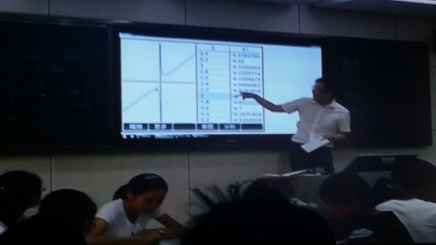 两位老师首先观摩了铜陵一中聂鑫老师应用“惠普e—数学实验室”对《探究对勾函数的图像与性质》进行教学。聂老师在教学中利用惠普图形计算器进行描点作图、函数解析式作图,促进学生对函数图像与性质的理解。