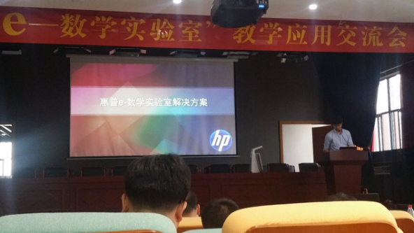 课后,铜陵市第一中学王屹宇校长致辞,介绍了铜陵一中西湖校区在信息化教学方面做出的努力;之后夏远景老师作《应用手持技术改变传统数学课堂》报告,介绍了信息化教学发展史;黄晓学教授作《论信息技术对数学课堂教学的影响》报告;李大江介绍“惠普e—数学实验室”整体解决方案。