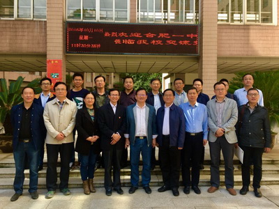 2016年10月10日上午,合肥一中方小培、张大勇两位副校长带领教导处主任、教科处主任、年级部主任以及奥赛学科教练来我校交流学科奥赛教学情况。郭惠宇校长、教导处王跃兵主任、雏鹰书院唐荣宏院长以及各学科教练参加了接待及交流。