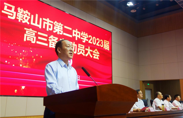 2022年8月31日上午,马鞍山二中2023届高三备考动员大会在新落成的综合楼报告厅隆重举行。高三年级全体师生、校领导班子全体成员、有关处室负责人、学生家长代表等共1000余人参加大会。大会由校党委委员、副校长王跃兵主持。