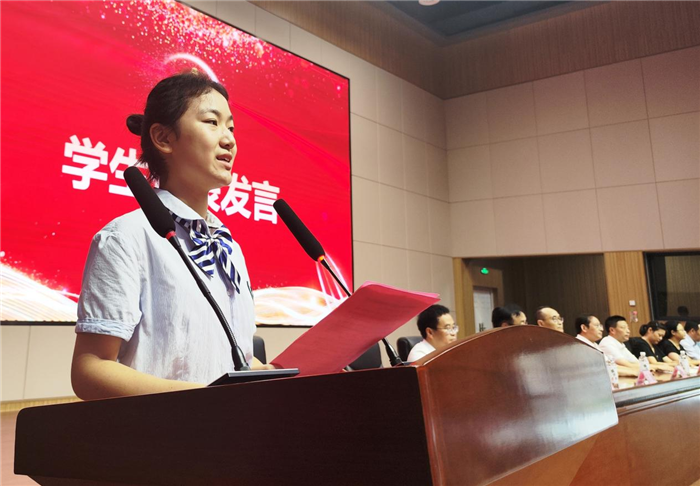 学生代表娄瀚予同学,深情回顾了在二中奋战的七百多个日日夜夜。她说,如今站在高三的路口,最大的渴望就是蟾宫折桂、金榜题名;并表示一定会坚持理想信念,奋勇拼搏,不负韶华,不负时代,在青春的赛道上跑出自己最好的成绩,跑出属于二中的辉煌与荣光!