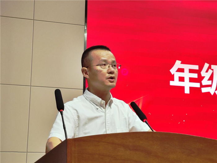 年级部孙志农主任代表高三年级部发言。他首先向为备战高考而勤奋努力的所有高三学子送去肯定和鼓励,并希望大家在接下来的一年里以更严格的标准要求自己,要进一步明晰自己努力的目标,要怀抱着一颗赤诚之心去迎接新的挑战。最后他激励大家:“只有无惧风雨者,方能收获更加美好的明天!”